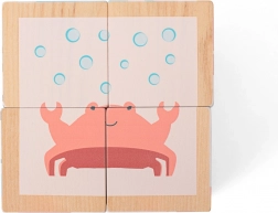 Ta drewniana układanka daje dzieciom radość odkrywania – wystarczy odpowiednio obracać klocki i odnaleźć wszystkie części jednego zwierzątka. Prosta zasada motywuje do wielokrotnej zabawy, która naturalnie wspiera koncentrację, rozpoznawanie kolorów i kształtów oraz cierpliwość.