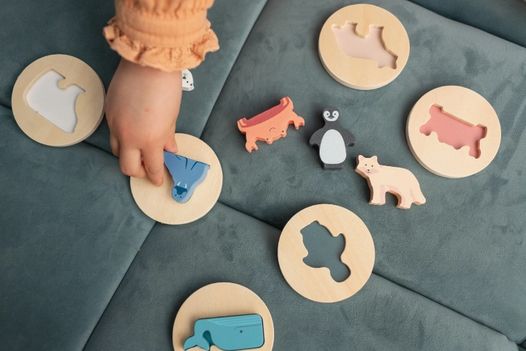 - mała motoryka, koordynacja ręka–oko, myślenie logiczne, rozpoznawanie kolorów i kształtów