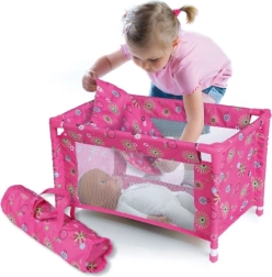 Łóżeczko składa się łatwo do kompaktowej torby, co umożliwia prosty transport i przechowywanie.