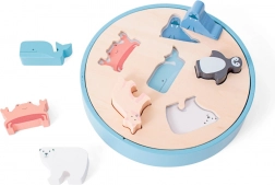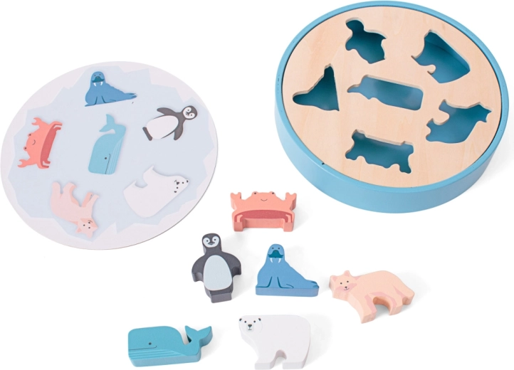 Ta wysokiej jakości drewniana układanka ze zwierzętami (foka, niedźwiedź polarny, krab, pingwin, lis i orka) to idealne pierwsze puzzle dla małych odkrywców. Elementy są solidne, dobrze mieszczą się w dziecięcej dłoni, a dzięki wyraźnym konturom i ilustracjom łatwo je dopasować na swoje miejsce.