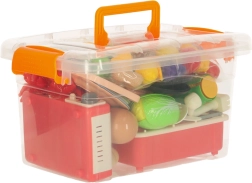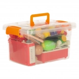 Wszystkie elementy można schować do plastikowego pudełka, co ułatwia porządkowanie po zabawie.