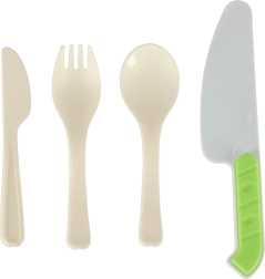 Zestaw zawiera szeroki wybór akcesoriów, takich jak sztućce, talerze, patelnie i wiele innych elementów do kreatywnej zabawy.