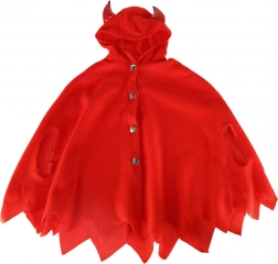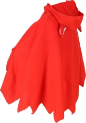 Intensywnie czerwona peleryna z zapięciem na 4 napy i ząbkowanym brzegiem nadaje kostiumowi wyrazisty diabelski wygląd, a przy tym pozostaje wygodna przez cały dzień.