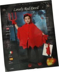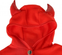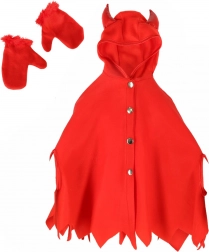 W mgnieniu oka zamień swoje dziecko w psotnego diabełka. Czerwona peleryna z kapturem i wyrazistymi rogami ma ząbkowany dół i zapięcie na cztery napy, więc świetnie trzyma się na miejscu i łatwo się ją zakłada oraz zdejmuje. Miękkie czerwone rękawiczki z pluszowym wykończeniem przyjemnie grzeją i dopracowują diabelski look do perfekcji.