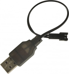 Auto jest zasilane akumulatorem 3,7 V (w zestawie). Ładowanie jest proste dzięki dołączonemu kablowi USB – wystarczy podłączyć do ładowarki lub komputera.