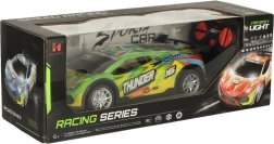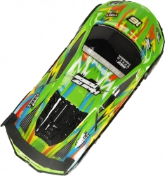 Stylowe światła LED podkreślają szybkość i budują atmosferę wyścigu. Zielony lakier z elementami graficznymi sprawia, że auto wygląda jak prawdziwy wyścigowy specjał.