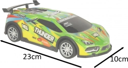 Wyrusz na tor z zielonym sportowym autem RC, które ucieszy początkujących kierowców i małych miłośników motoryzacji. Gumowe opony zapewniają dobrą przyczepność i delikatność dla podłóg, dzięki czemu auto nadaje się do zabawy w pomieszczeniach i na chodniku. Światła LED podkreślają dynamiczny wygląd i zwiększają atrakcyjność zwłaszcza o zmierzchu.