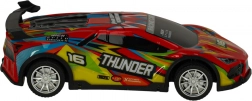 Czerwone auto wyścigowe THUNDER zapewnia emocjonującą jazdę od pierwszej sekundy. Oświetlenie LED podkreśla akcję także w półmroku, a gumowe opony zapewniają dobrą przyczepność bez rysowania podłogi. Świetne do zabawy w pomieszczeniach i na podwórku.