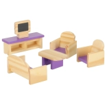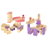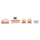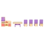 Drewniane meble do domku dla lalek fioletowe, 19 elementów