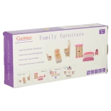 Zestaw obejmuje wyposażenie salonu, sypialni, łazienki i kuchni, dzięki czemu dzieci mogą łatwo tworzyć realistyczne scenki z codziennego życia. Gładkie krawędzie i trwałe powłoki gwarantują bezpieczeństwo i długotrwałe użytkowanie.