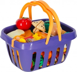 Kolorowy zestaw plastikowego jedzenia dla dzieci wspiera małą motorykę, naukę gotowania i kreatywną zabawę w kucharza. Elementy łączą się na rzep, dzięki czemu można „kroić” produkty bezpiecznym plastikowym nożem i ponownie je składać. W zestawie znajdują się tace, talerzyki i dziecięce sztućce, a wszystko mieści się w praktycznym koszyku z uchwytami ułatwiającym przenoszenie i przechowywanie.
