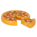 Plastikowa pizza z sześcioma kawałkami zachęca do dzielenia się, serwowania i wspólnej zabawy. Świetna baza do zabawy w restaurację lub rodzinny piknik.