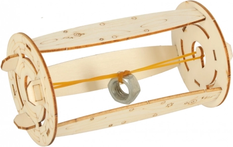 Prosty model z gumką i nakrętką demonstruje magazynowanie i uwalnianie energii. Dzieci łatwo zrozumieją prawo Hooke’a oraz podstawowe pojęcia dotyczące ruchu.