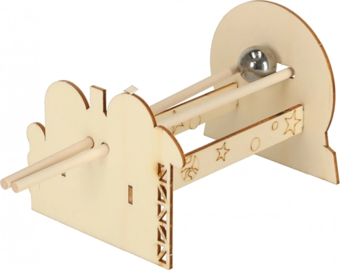 Drewniana katapulta z metalową kulką pokazuje dzieciom zasady energii potencjalnej i kinetycznej oraz wpływ grawitacji na tor lotu. Idealna do bezpiecznych domowych doświadczeń.