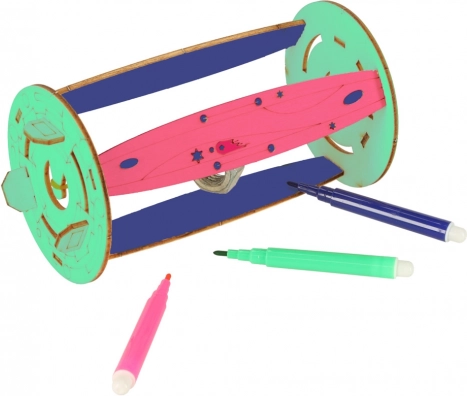 Dzięki dołączonym akcesoriom dzieci mogą wypróbować różne zjawiska: sprężystość i energię potencjalną (model z gumką), równowagę i naprężenia w linkach (wiszący model „UFO”) oraz skutki grawitacji i ruchu (katapulta z metalową kulką). Pisaki w 9 kolorach pozwolą każdy model ozdobić i spersonalizować.