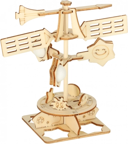 Idealny do rozwijania zręczności manualnej, cierpliwości i precyzji. W przystępny, zabawny sposób wprowadza dzieci w poznawanie zjawisk przyrodniczych i podstaw meteorologii. Gotowy model daje dzieciom poczucie dum y z własnego sukcesu.