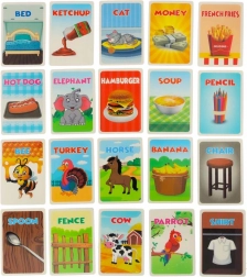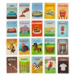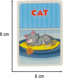 Zestaw zawiera karty z angielskimi napisami, co jest świetnym sposobem na naukę nowych słówek i rozwijanie kompetencji językowych.