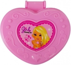 Ten różowy zestaw piękności zawiera kosmetyczne przedmioty zaprojektowane specjalnie dla dzieci, wszystko w kształcie atrakcyjnego serca.