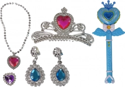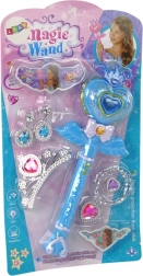Wejdź do świata fantazji z interaktywną magiczną różdżką, która zmieni każdy pokój w magiczne niebo pełne gwiazd. Wystarczy nacisnąć przycisk, aby uruchomić migoczące światełka i bajkowe melodie. Zestaw zawiera również kolczyki, koronę, pierścień i naszyjnik z kolorowymi kamieniami.