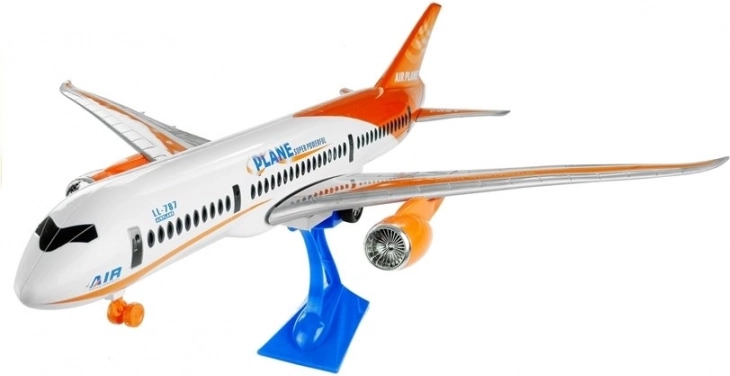 Prezentowany samolot ma smukły, gładki design. Łączy stonowaną biel z intensywną pomarańczą – tę znajdziemy m.in. na ogonie samolotu, a także na jego silnikach i srebrnoszarych skrzydłach. Dzięki detalom w postaci kolorowych pasów, a także napisów i oznaczeń, samolot wygląda jak prawdziwy, co jeszcze bardziej pobudza dziecięcą wyobraźnię.