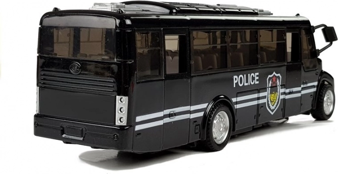 Detailowe czarne wykonanie z przezroczystymi oknami, lusterkami i napisami nadaje modelowi autentyczny wygląd i zwiększa frajdę z zabawy.