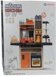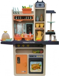 Ta nowoczesna dziecięca kuchnia zachwyca stonowanym połączeniem pomarańczowego i kremowego oraz wzornictwem przypominającym prawdziwą kuchnię domową. Dzięki elementom świetlnym na płycie i realistycznym dźwiękom gotowania dzieci zanurzą się w rolę małego szefa kuchni. Praktyczne półki, haczyki i przegródki pomagają utrzymać porządek i rozwijać nawyki organizacyjne.