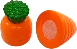 Zestaw plastikowych produktów w żywych kolorach wspiera poznawanie żywności i zabawę w przygotowywanie posiłków.