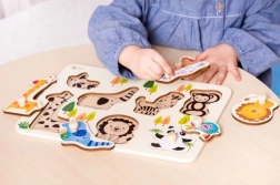 Te drewniane puzzle są idealnym wyborem dla dzieci, które zaczynają odkrywać świat zwierząt. Dzięki guzikom ułatwiającym chwytanie i solidnemu wykonaniu są doskonałym narzędziem do rozwoju motoryki i umiejętności rozpoznawania u dzieci od 18 miesięcy.