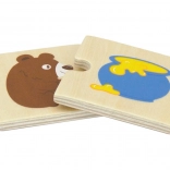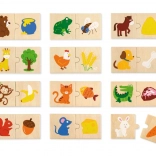 - 24 drewniane elementy z ilustracjami zwierząt i ich pokarmu