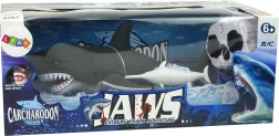 Ruchomy ogon i segmentowany korpus imitują pływanie prawdziwego rekina, uzupełnione świecącymi oczami dla imponującego efektu.