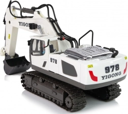 Ta zdalnie sterowana koparka w białym kolorze z czarnymi detalami wiernie naśladuje prawdziwą maszynę budowlaną. Dzięki technologii 2,4 GHz unikniesz zakłóceń i skorzystasz z płynnego sterowania. Kontroler z dwoma joystickami umożliwia jazdę do przodu/tyłu i w lewo/prawo, obrót kabiny oraz precyzyjną pracę łyżką.