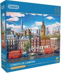 Odkryj urok brytyjskiej metropolii z wysokiej jakości puzzlami GIBSONS składającymi się z 500 elementów. Idealne do relaksu i treningu umysłu, z motywem kultowych londyńskich ulic, a w zestawie znajduje się także podgląd wzoru. Po ułożeniu puzzle mają wymiary 49 × 34 cm i ucieszą zarówno początkujących, jak i zaawansowanych miłośników układanek.