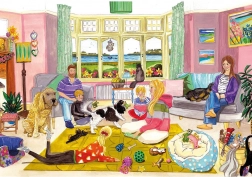 Odkryj cztery dopracowane ilustracje przedstawiające radosne chwile z psami – od spacerów w naturze po domowy relaks. Każde puzzle o wymiarach ok. 49 × 34 cm oferuje barwną scenę i wysokiej jakości druk, który podkreśla subtelne detale i żywe kolory. Układanie jest płynne i satysfakcjonujące dzięki precyzyjnym wycięciom.