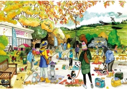 Wysokiej jakości druk i nasycone barwy podkreślają każdy detal – od plażowego relaksu przez rodzinną atmosferę po jesienne targi. Dzięki temu układanie jest wyjątkowo atrakcyjne wizualnie.