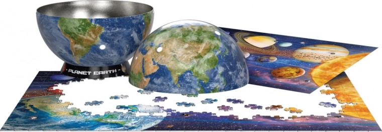 Puzzle Eurographics z 550 elementami w pudełku w kształcie planety Ziemia. Wymiary 48 x 33 cm gwarantują zabawę dla wszystkich miłośników kosmosu.