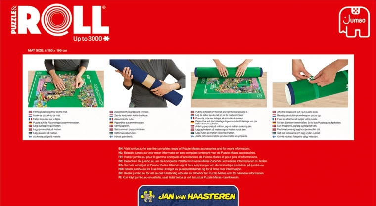 Praktyczna rolowana mata JUMBO do puzzli aż do 3000 elementów oszczędzi miejsce i zapewni bezpieczne przechowywanie oraz transport rozpoczętego lub ukończonego obrazu. Dzięki oznaczonym wymiarom puzzli JUMBO łatwo precyzyjnie ustawisz krawędzie, a po układaniu wszystko po prostu zrolujesz i zabezpieczysz dołączonymi paskami.