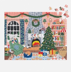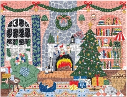 Sielankowa scena z choinką, kominkiem i prezentami rozświetli dom i nastroi Cię na święta. Gotowe puzzle mają ok. 58,4 × 44,5 cm – idealne do wyeksponowania.