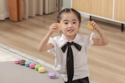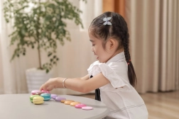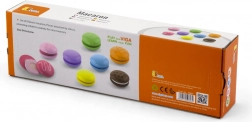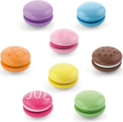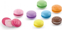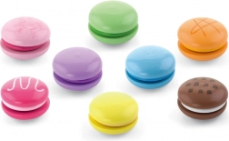 Zestaw zawiera 8 realistycznie wykonanych makaroników w delikatnych pastelowych kolorach. Każdy makaronik składa się z dwóch części połączonych rzepem, więc dzieci mogą je łatwo „rozpołowić” i ponownie złączyć – ćwiczą chwyt, koordynację ręka–oko oraz odkrywają kombinacje kolorów.