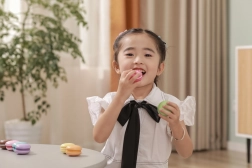 Dwie połówki każdego makaronika są połączone rzepem – dzieci mogą je rozdzielać i ponownie składać w nowe „smaki”, ćwicząc palce oraz koordynację.