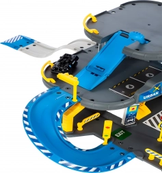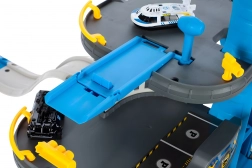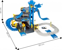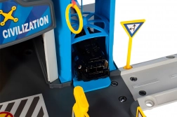 Trzypoziomowy policyjny garaż to idealna zabawka dla małych kierowców. Dzięki ruchomej windzie pojazdy łatwo dotrą na każdy poziom, na dachu czeka lądowisko na szybkie akcje helikoptera, a rampy, szlabany i oznakowanie zapewniają realistyczną zabawę. W pudełku znajdziesz 2 autka i helikopter, więc dzieci mogą zacząć bawić się od razu.