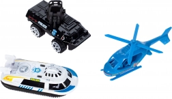 - Bogate wyposażenie: znaki drogowe, szlabany, rampy, 2 auta i helikopter.