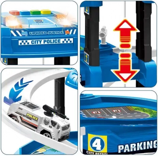 Policyjny zestaw parkingowy XXL + mata do zabawy miasto, 82 elementów