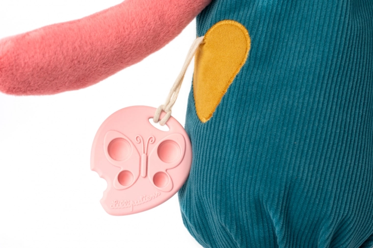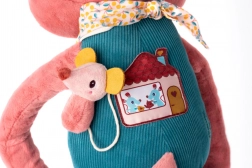Sercowe i motylkowe akcenty, kolorowa chustka oraz figlarne przeszycia pobudzają dziecięcą ciekawość i dostarczają nowych bodźców przy każdym dotyku.