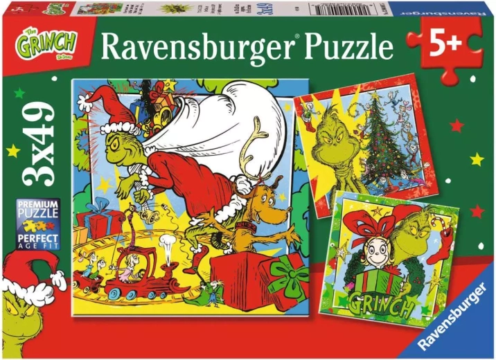 Ravensburger Puzzle Grinch 3x49 elementów przynosi radość dzieciom i dorosłym z trzema różnymi obrazkami, doskonałą jakością i urzekającym designem.