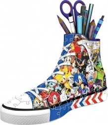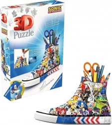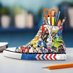 Odkryj Ravensburger 3D puzzle w kształcie sneakersa z motywem Jeża Sonica, który może służyć jako oryginalny stojak na pióra, kredki czy pędzle. Układanie umożliwiają specjalnie zakrzywione i elastyczne części, które dokładnie pasują na swoje miejsce, tworząc solidną i stabilną konstrukcję bez potrzeby klejenia.