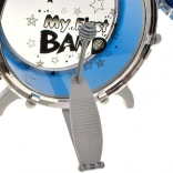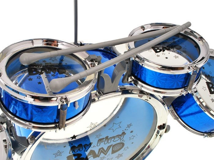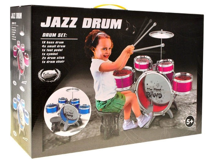 W opakowaniu znajdziesz duży bęben basowy z pedałem, dwa średnie i dwa małe bębenki, metalowy talerz, krzesełko oraz parę pałeczek. Komplet zapakowany jest w kartonowe pudełko i gotowy, by ucieszyć każdego małego perkusistę.
