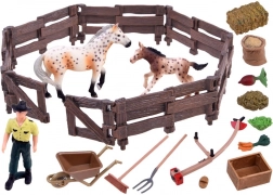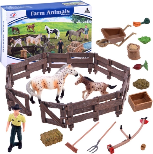 Ten bogato wyposażony zestaw przeniesie dzieci do świata farmy. Znajdą w nim dwie wiernie odwzorowane figurki koni (klacz i źrebię), farmera, zagrodę oraz mnóstwo akcesoriów, takich jak taczka, widły, grabie, koryto i pasza. Realistyczne detale, od faktury „drewna” na ogrodzeniu po ubarwienie koni, pobudzają wyobraźnię i zapewniają długie godziny zabawy.