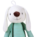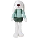 Pluszowy królik w stylowych ogrodniczkach to doskonały kompan do dziecięcego pokoju. Dzięki mięciutkiej powierzchni świetnie sprawdzi się do codziennego tulenia, wspólnego czytania bajek i spokojnego zasypiania. Pasiasty T-shirt i zielone spodnie na szelkach nadają zabawce czarujący i ponadczasowy wygląd.