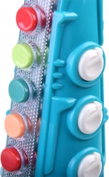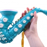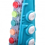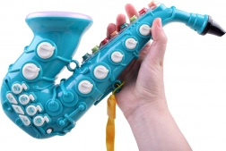 Ten kolorowy dziecięcy saksofon wspiera poczucie rytmu, słuch muzyczny i motorykę. Po włączeniu wita dziecko wesoła melodia, a podświetlane elementy rozbłyskują. Można słuchać gotowych utworów lub tworzyć własne – dmuchając w ustnik i naciskając klawisze jak w prawdziwym instrumencie.