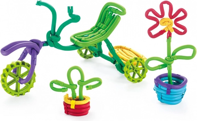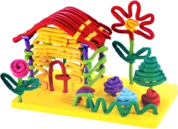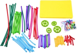 Ten kolorowy zestaw łączy miękkie piankowe „makarony”, plastikowe kółka, łączniki i bazową podstawkę. Dzieci mogą zginać, przeplatać i łączyć patyczki w konstrukcje 3D, postacie czy pojazdy. Idealny dla dzieci od ok. 3 lat – klocki wspierają koncentrację i radość z odkrywania.
